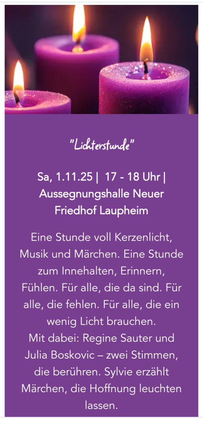 Eintritt frei – Spenden willkommen | Veranstalter Lila Wolken e. V.Mit freundlicher Unterstützung der Stadt Laupheim und Bestattungen Winter.